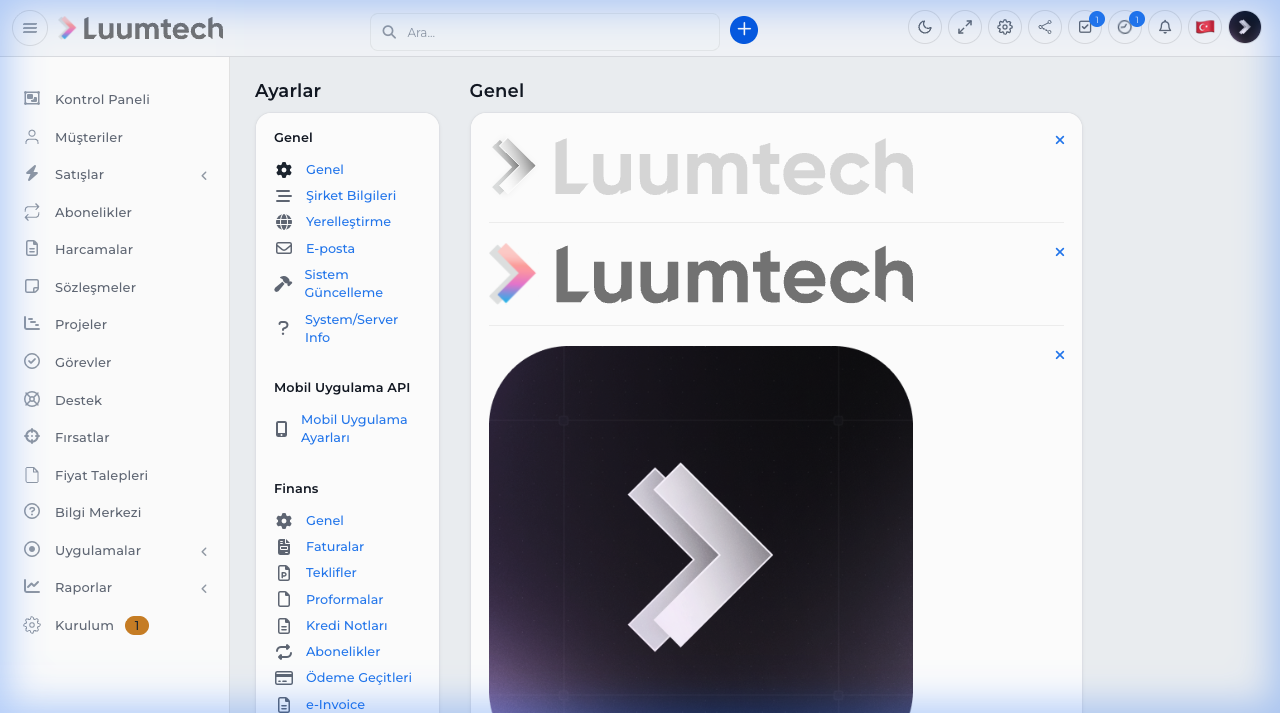 Ayarlar bölümü, CRM sisteminizin tüm yapılandırmasını yönetmenizi sağlar.